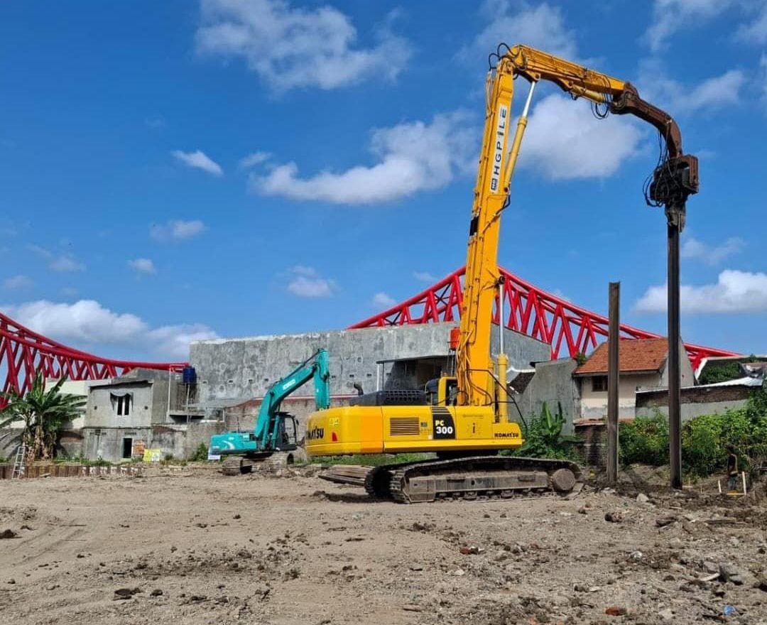 HG TRAKTOR menghadirkan layanan jasa pemancangan lengkap untuk kebutuhan proyek konstruksi di seluruh Indonesia. Kami menangani pemasangan sheet pile, tiang baja, casing pondasi, hingga penarikan tiang lama dengan peralatan modern dan tim berpengalaman. Setiap proyek dikerjakan dengan presisi tinggi agar menghasilkan pondasi yang kokoh, stabil, dan tahan lama.